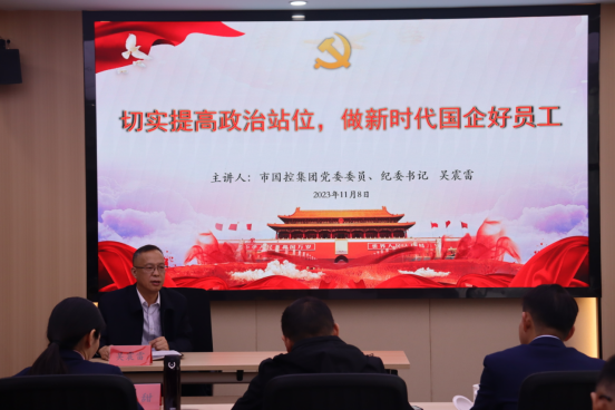 近日,市國控集團(tuán)黨委委員、紀(jì)委書記吳震雷赴交易公司開展《切實提高政治站位,做新時代國企好員工》專題黨課。交易公司支部書記及全體員工、保理公司部分員工參會。